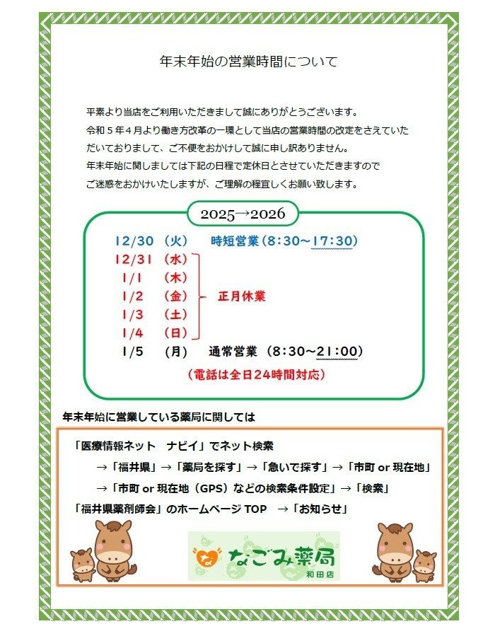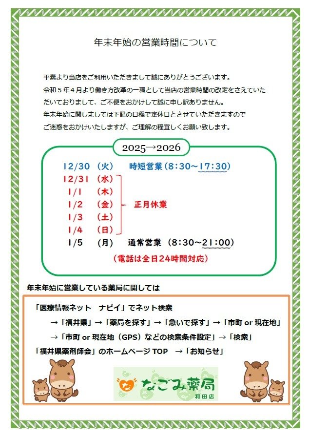 年末年始のご案内